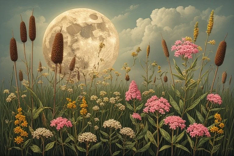 The August Sturgeon Moon is named after the freshwater giant & a notable time when it was once the time to fish for these. Thankfully this soap does not contain any, only in name. Made with plants found along the water's edge in tribute to this water giant themed moon. Goldenrod is good for skin rashes & eczema as well as for burns & open scrape healing. Queen Anne’s Lace has emollient, skin-softening & anti-inflammatory properties. Joe Pye Weed is an excellent way to fight eczema as it contains betulinic acid. Ground oatmeal scrubs & exfoliates those hard to reach pores. This soap is a light scrub with the oatmeal & contains no essential oils, allowing it to be sensitive skin friendly.